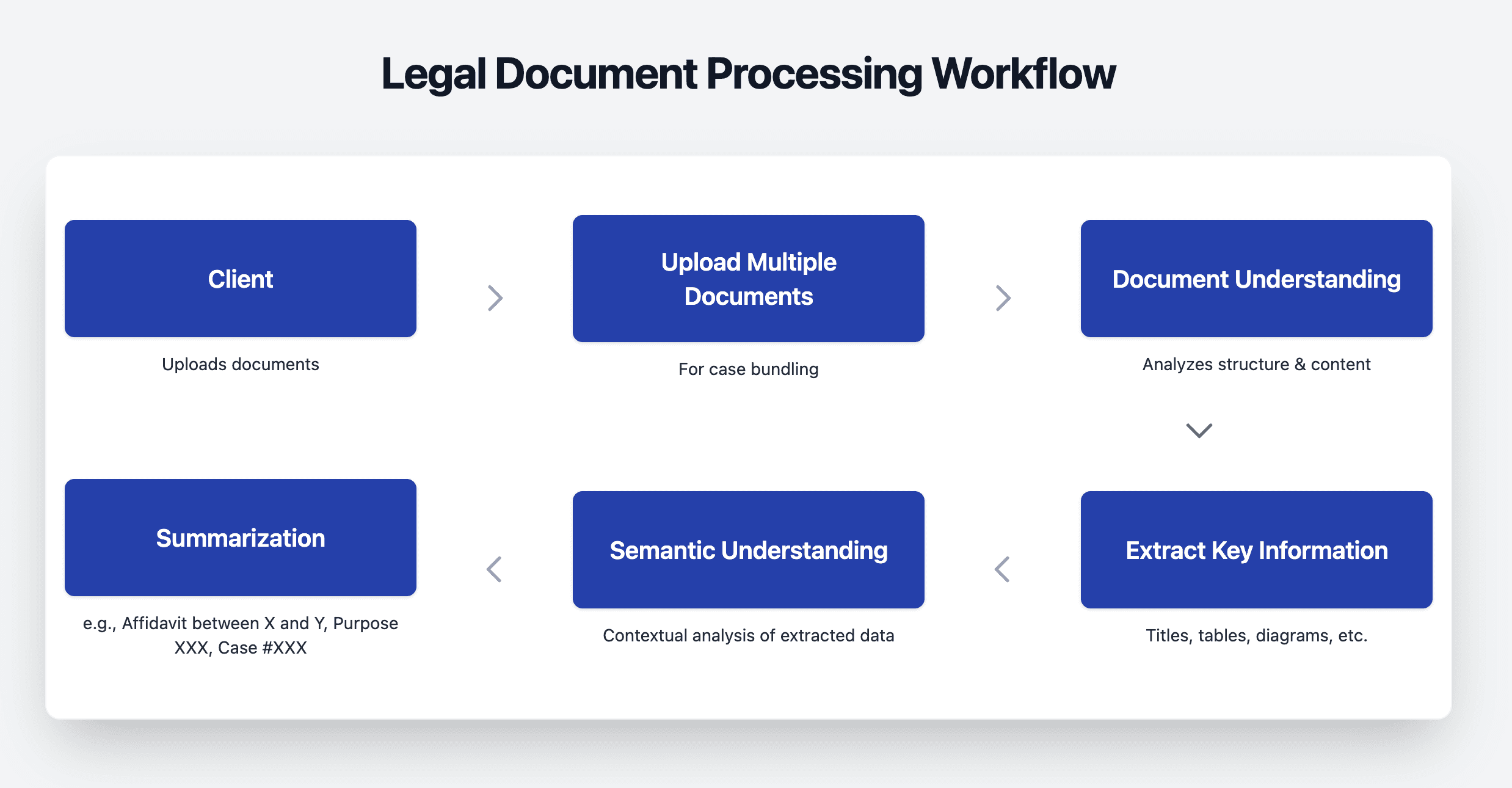 Law document bundling takes a lot of manual effort to read and verify each file. Our AI pipeline automates this by extracting key details (parties, dates, titles, etc.), helping law clients save time and focus on more important tasks.